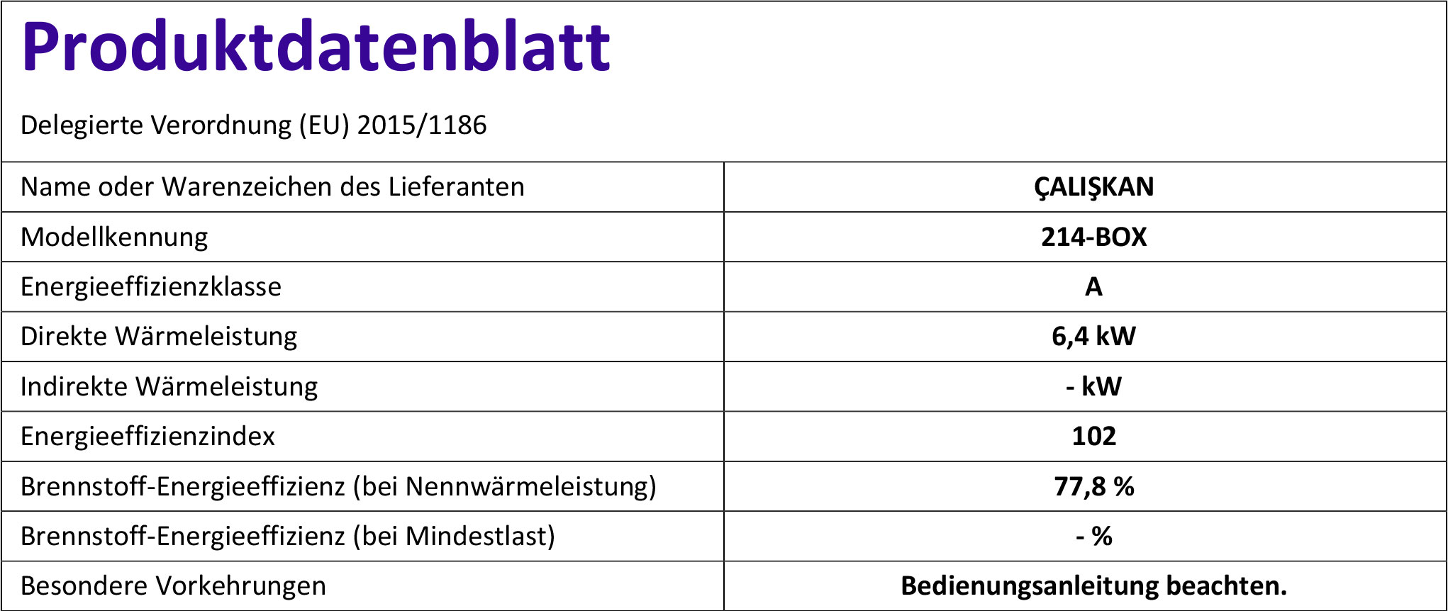 - Wirkungsgrad (%): 77,85 %